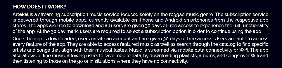 Artekal music joins the music streaming fray with a focus on the reggae music genre. The streaming service offers mobile apps on IOS and Android with all users getting 30 day trials to kick the tires. Music is delivered and segmented into the various sub-genres of reggae music. Those being roots rock, lovers rock, dancehall, ska, dub, and mento.