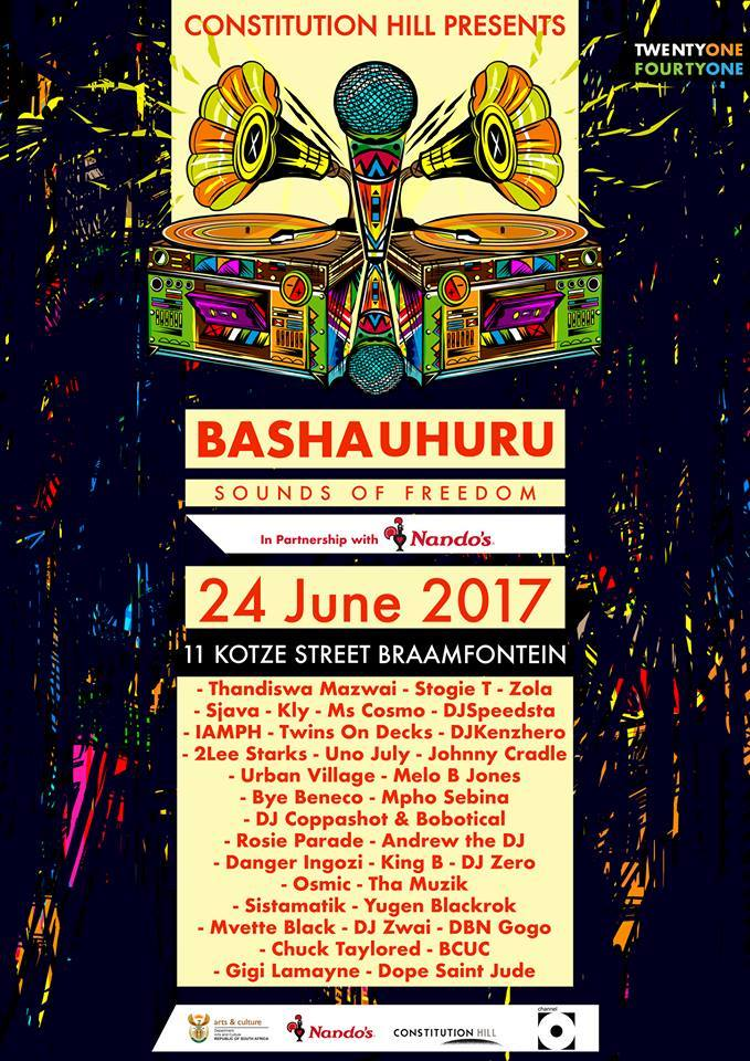 The Basha Uhuru Freedom Fest will be held at Constitution Hill 21 – 25 June 2017. All Events are Free, but tickets from Webtickets are required for entry.